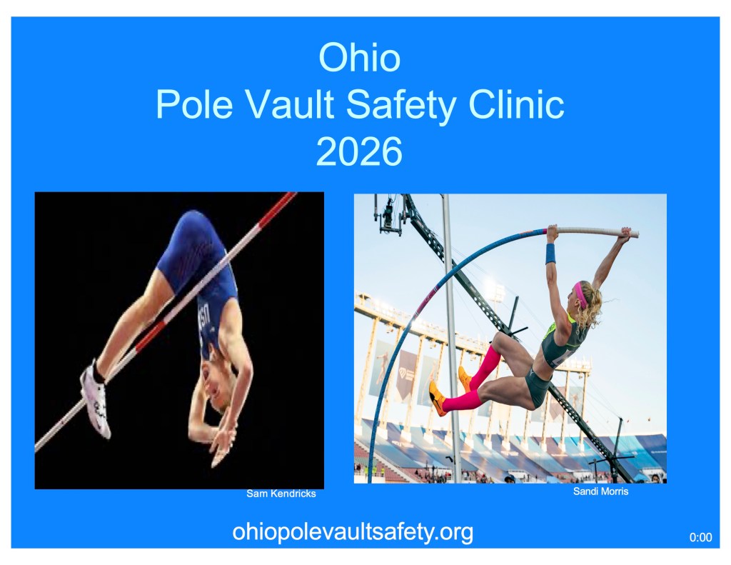 I’ve coached pole vault here in Ohio since 1982. In 1990 I was a member of the Ohio Coaches Association Committee that developed a series of clinics to improve pole vault coaching and safety. In 2001, Ohio became one of the first states to require Pole Vault Safety Certification to coach Middle School or High School Pole Vault. I’ve been conducting PV Safety Clinics for the Coaches Association ever since.